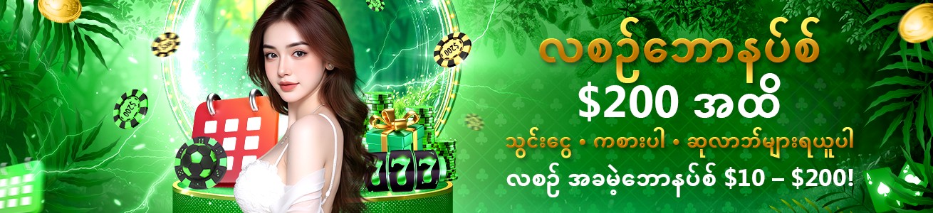 - ငွေထုတ်ယူပါက ဘောနပ်ပမာဏသည် သင်၏လက်ကျန်မှ ထုတ်ယူမည်ဖြစ်သည်။
