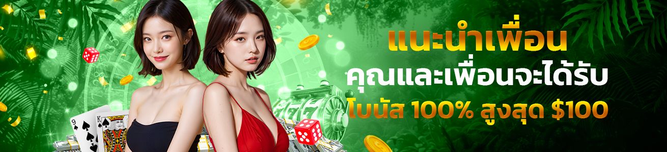 - 100%.โบนัส Refer-A-Friend จะใช้ได้เฉพาะเมื่อผู้ตัดสินกลายเป็น สมาชิกใหม่ ทำการฝากเงิน ติดต่อขอโบนัส และยอดโบนัสต้องมียอดเทินโอเวอร์ 1 เท่า (เงินฝาก + โบนัส)